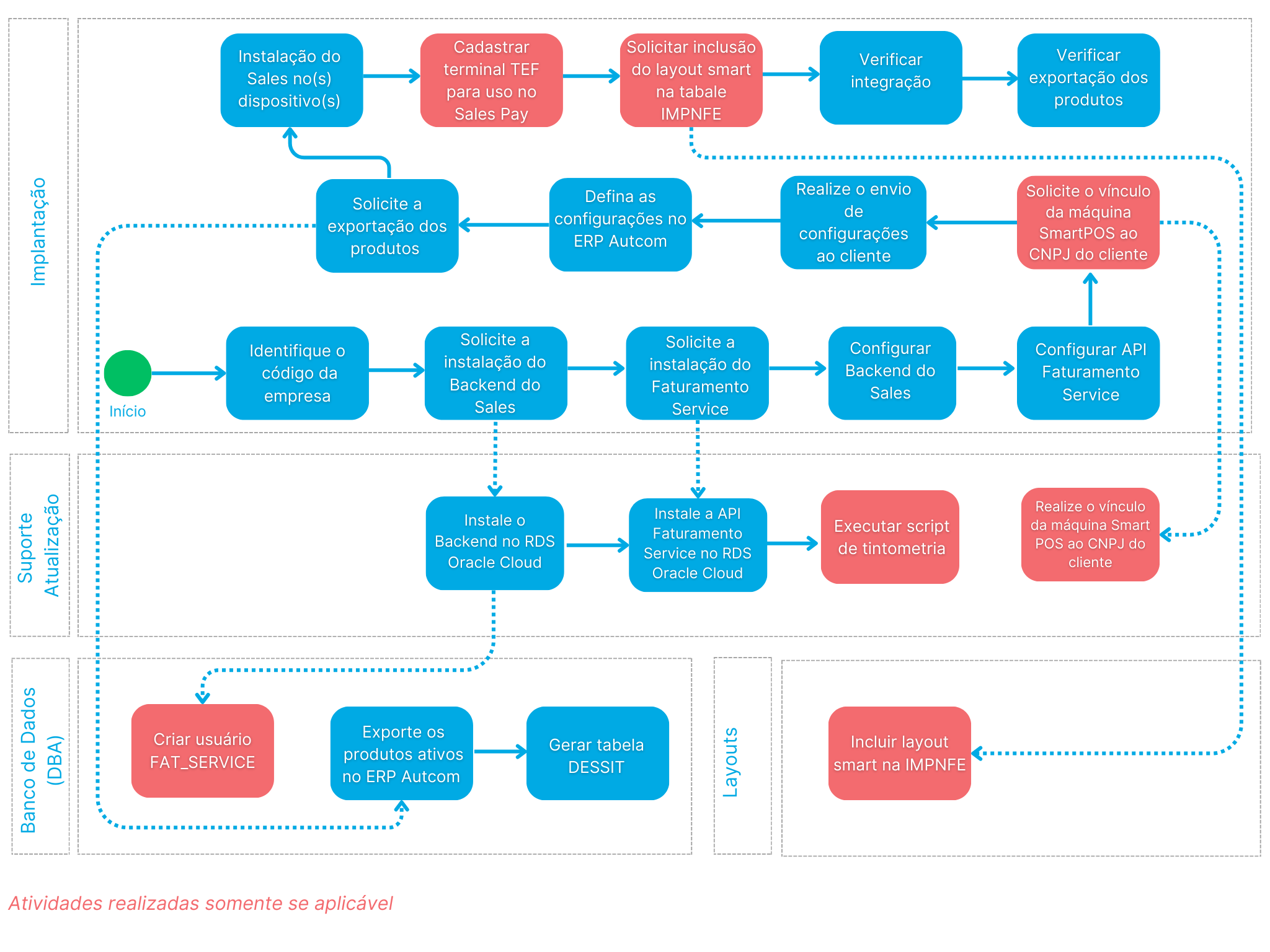 A seguir, você encontrará todas as instruções necessárias para realizar a implantação completa do Sales, desde o fluxo inicial de instalação até as configurações técnicas realizadas pelas equipes envolvidas.