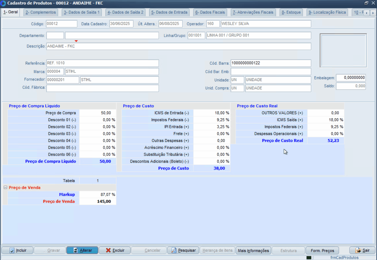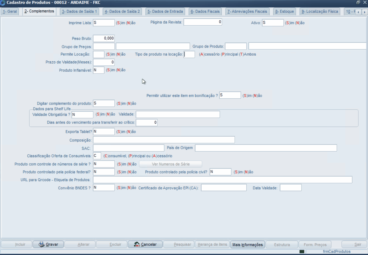 - Principal > Manutenção de Cadastros > Produtos > Cadastro de Produtos