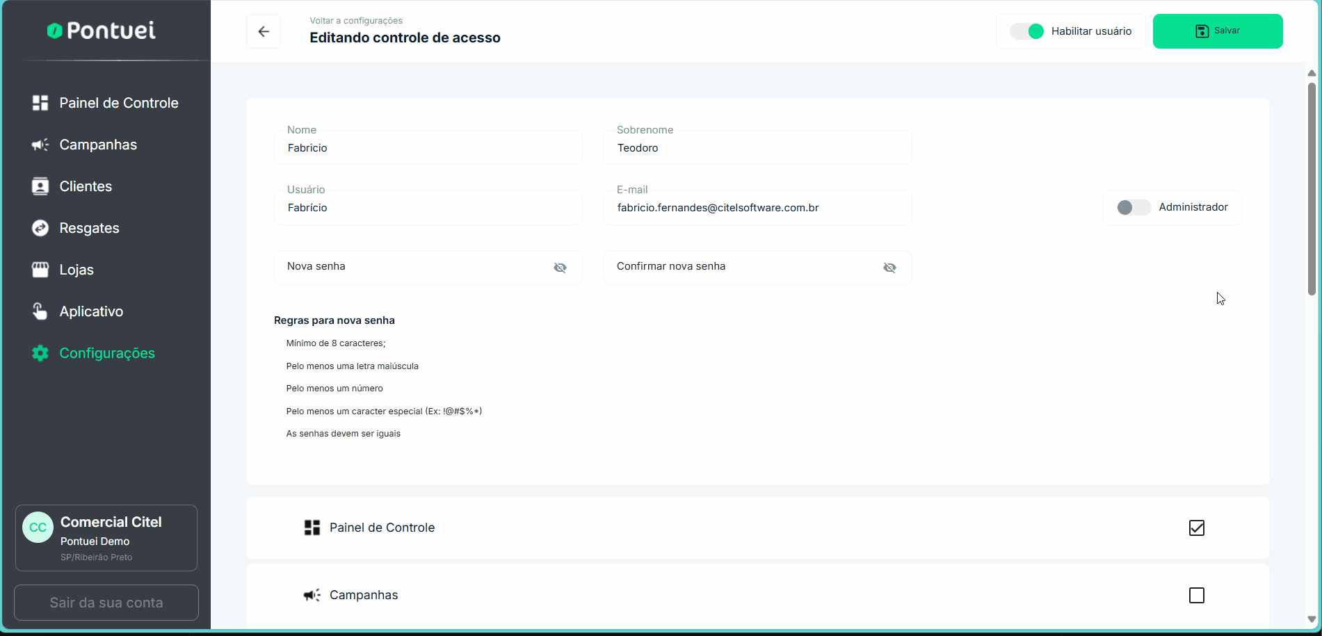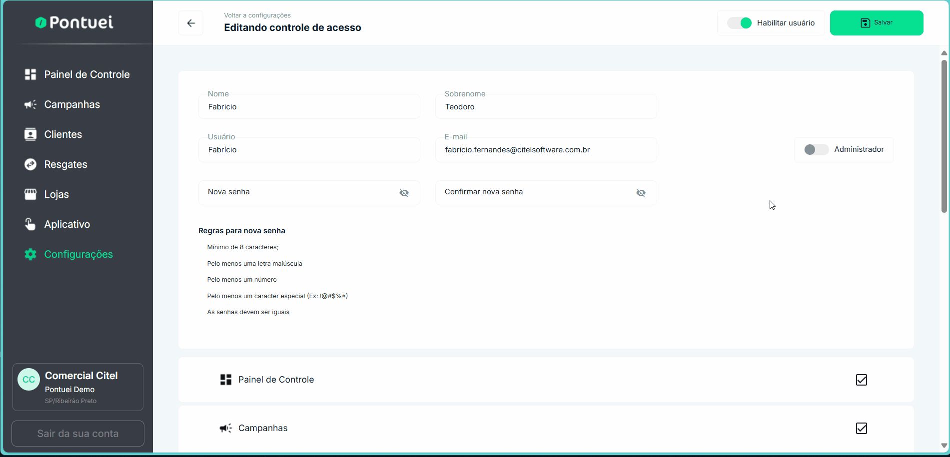 [8] Habilitar Usuário: marque essa opção para habilitar (ativar) o cadastro.