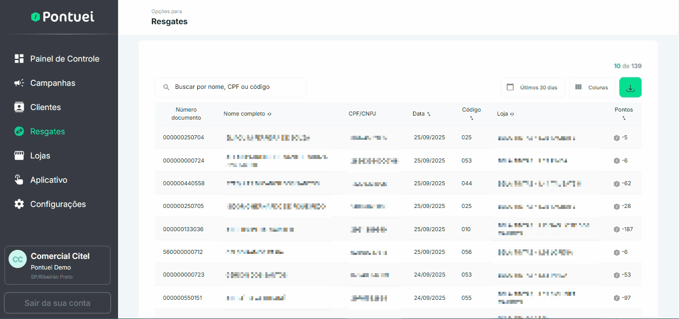 Um relatório de lançamentos de Resgates é fundamental para garantir transparência e controle na gestão dos pontos dentro do sistema. Ele permite ao administrador acompanhar todas as movimentações realizadas pelos profissionais, assegurando que cada resgate esteja devidamente registrado e associado ao cliente correto.