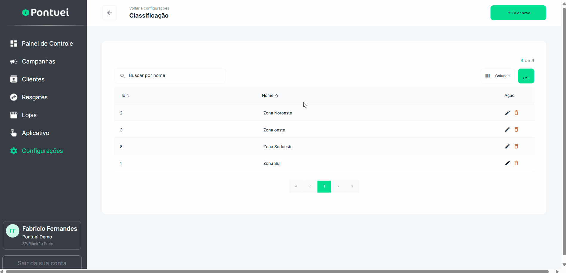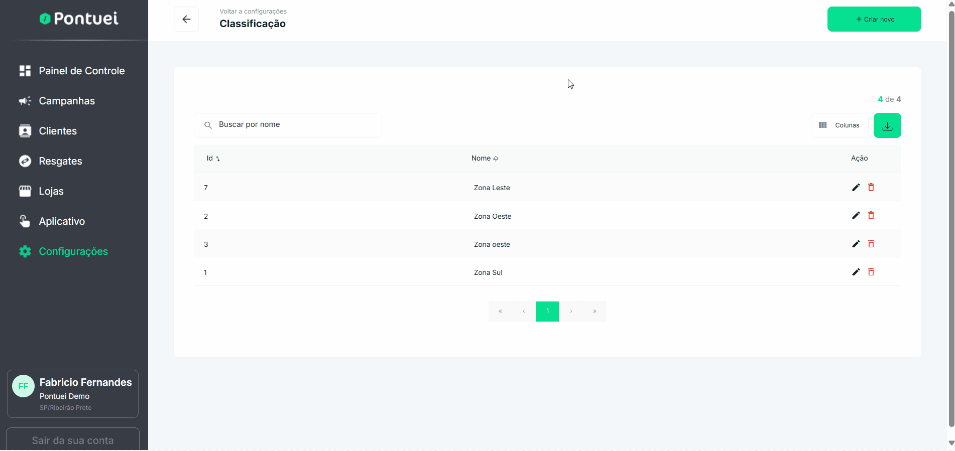 Para saber os detalhes do cadastro de classificações, consulte a atividade Cadastrar classificação de lojas Backoffice Pontuei