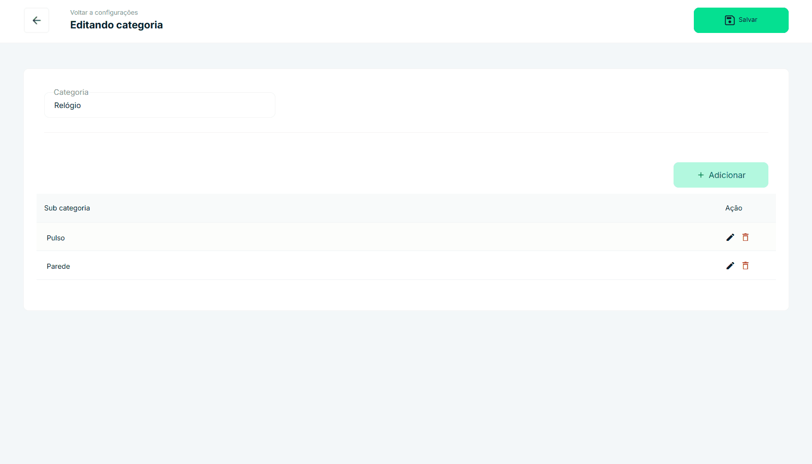 Caminho de acesso: Configurações/Categorias – configuracao/categoria