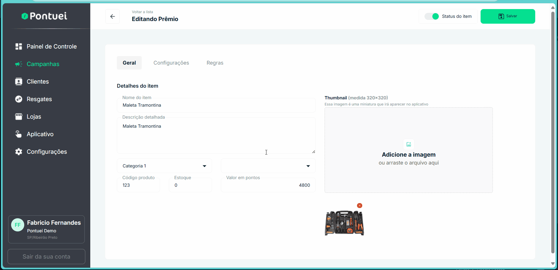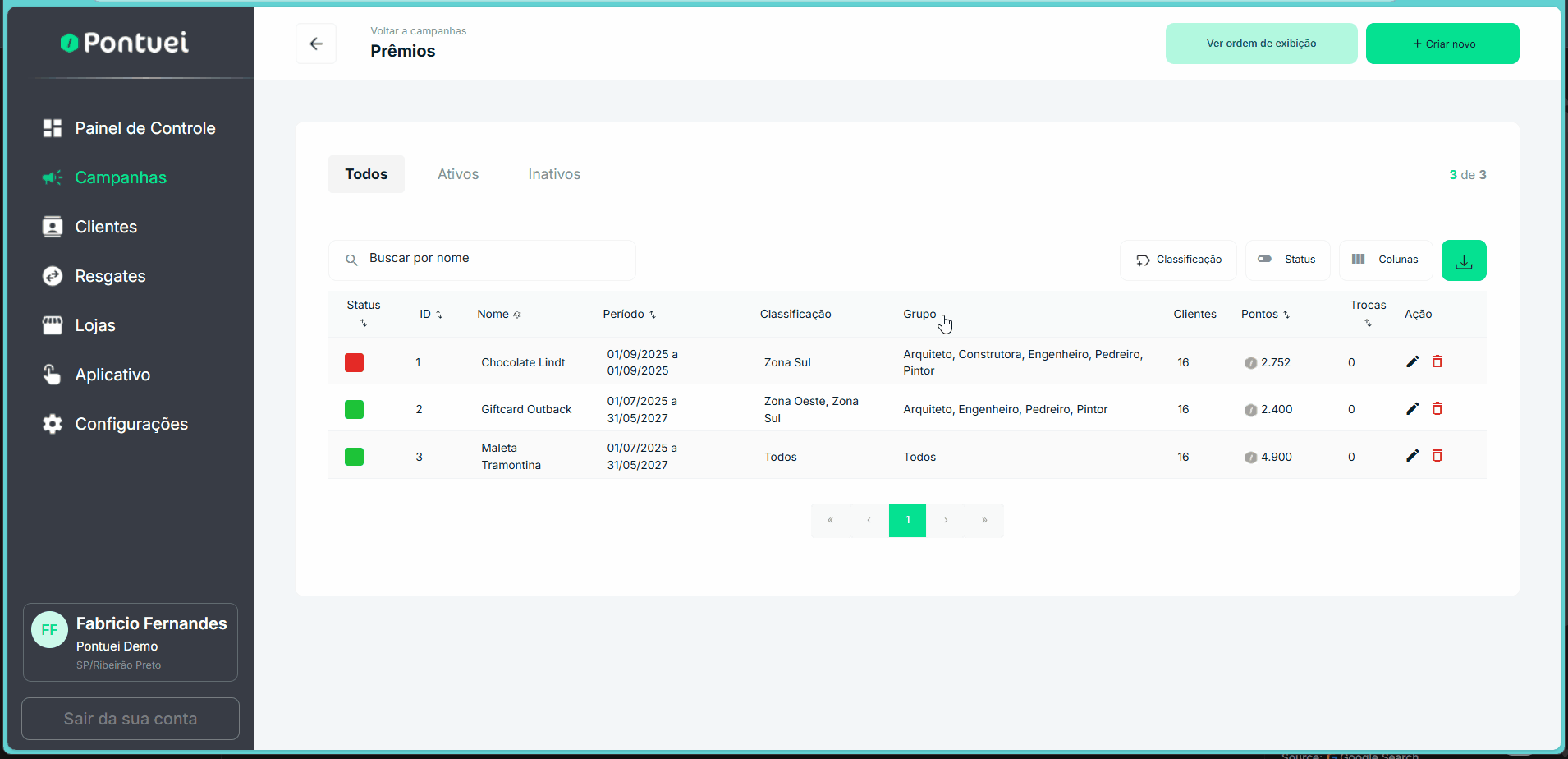 A manutenção no cadastro de campanhas no Backoffice do Pontuei é o processo de gerenciar todos os prêmios e ofertas disponíveis no aplicativo de fidelidade.