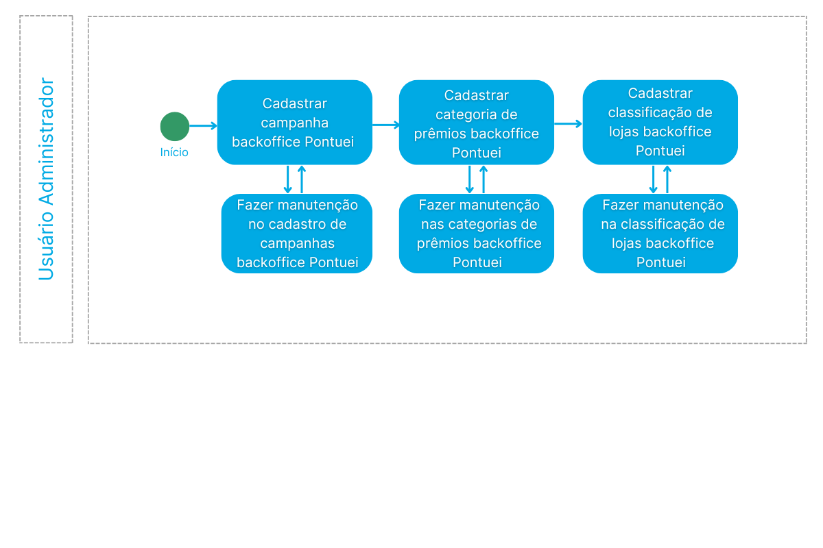 O subprocesso Campanhas é responsável pela criação e manutenção das campanhas de incentivo do Pontuei, incluindo a definição de critérios de bonificação, classificações de lojas e categorias de prêmios que serão disponibilizados aos profissionais parceiros.