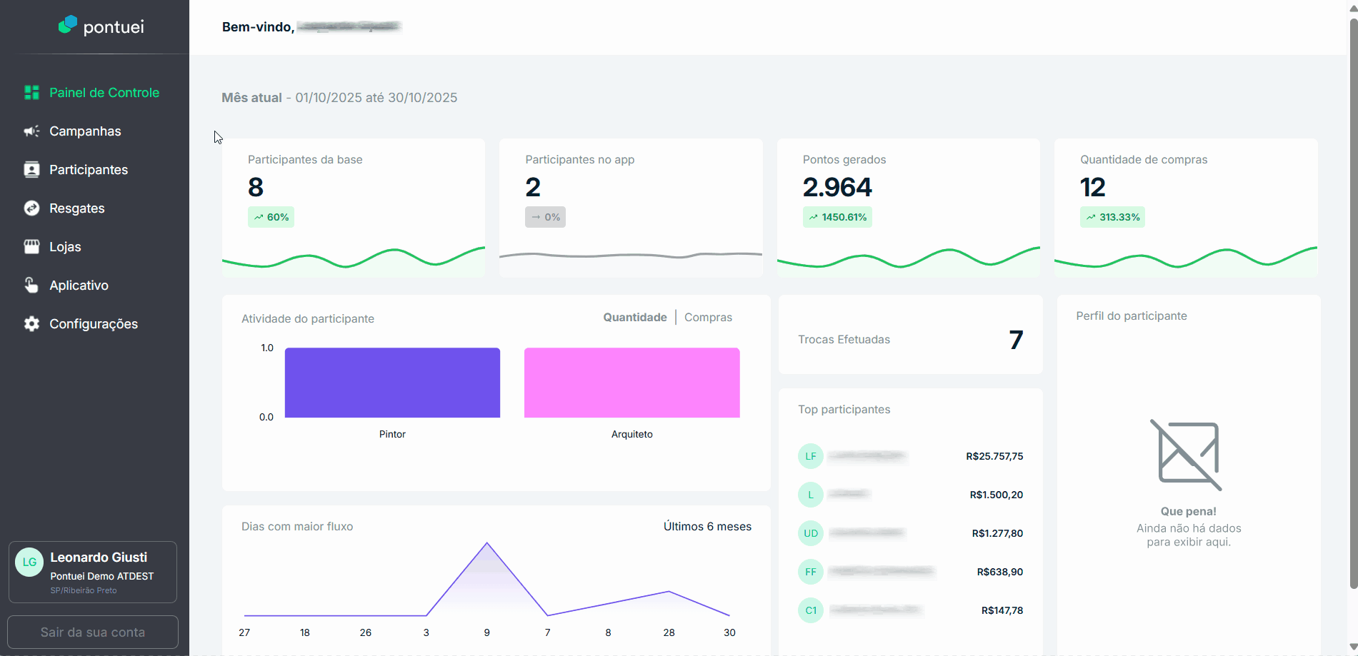 Para executar esta atividade, certifique-se de que já esteja devidamente cadastrado no Backoffice e possua o direito de acesso do menu Participantes no Pontuei.