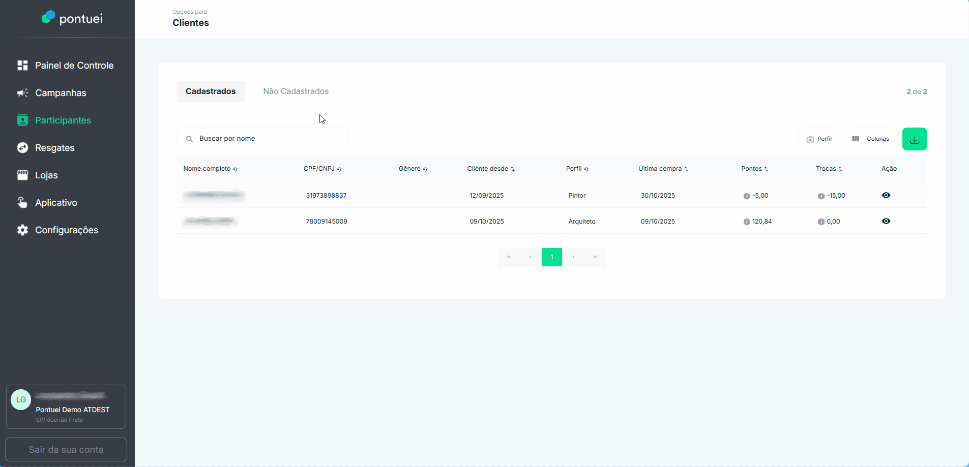 Ao acessar a seção “Participantes“, o administrador tem à sua disposição um relatório completo com a lista de todos os participantes. É possível visualizar dados como nome, perfil, a quantidade de pontos acumulados e o número de trocas já realizadas por cada um. A plataforma diferencia os profissionais que já se cadastraram e utilizam o aplicativo daqueles que estão apenas na base de dados do ERP Autcom, mas ainda não aderiram ao programa.