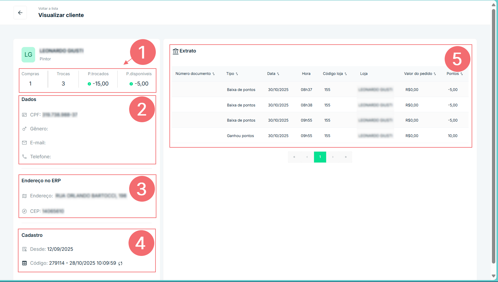 [1] Resumo do profissional: Aqui você tem uma visão geral e rápida da atividade do profissional. Mostra o total de compras, quantas trocas de pontos foram feitas, o total de pontos que ele já usou (“P. trocados“) e o saldo atual de pontos que ele ainda pode usar (“P. disponíveis“).