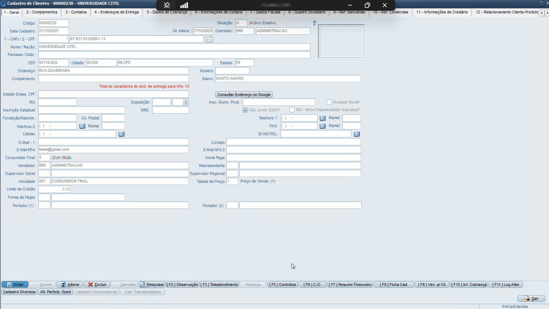 Caminho de acesso: Cadastros/Clientes – frmCadClientes