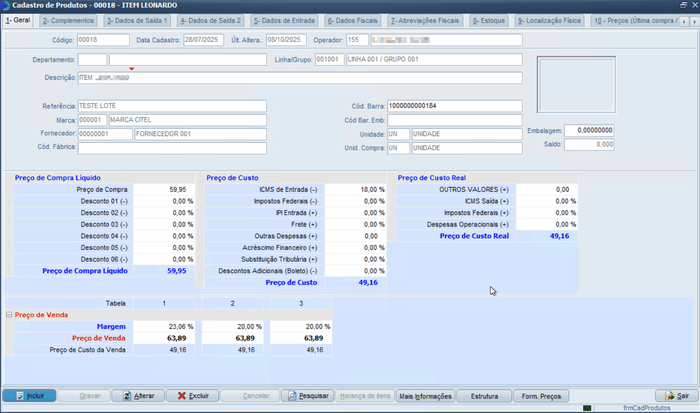 - Principal > Manutenção de Cadastros > Produtos > Cadastro de Produtos